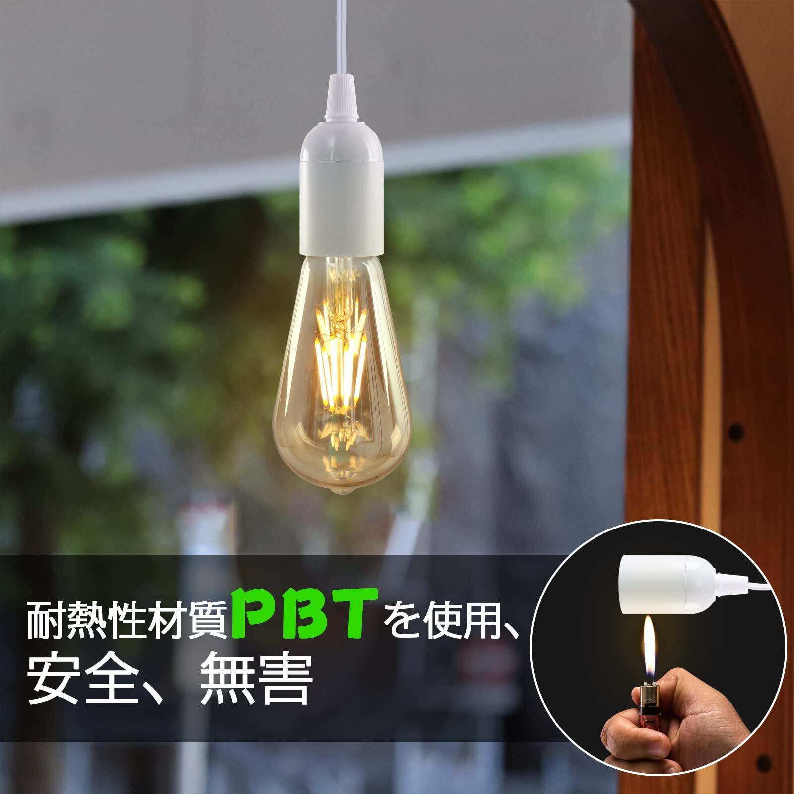 2.口金:E26。定格電圧:AC100V。電球は220W以下のものをご使用ください。長さが1.8mの吊り下げコード付ソケットです。