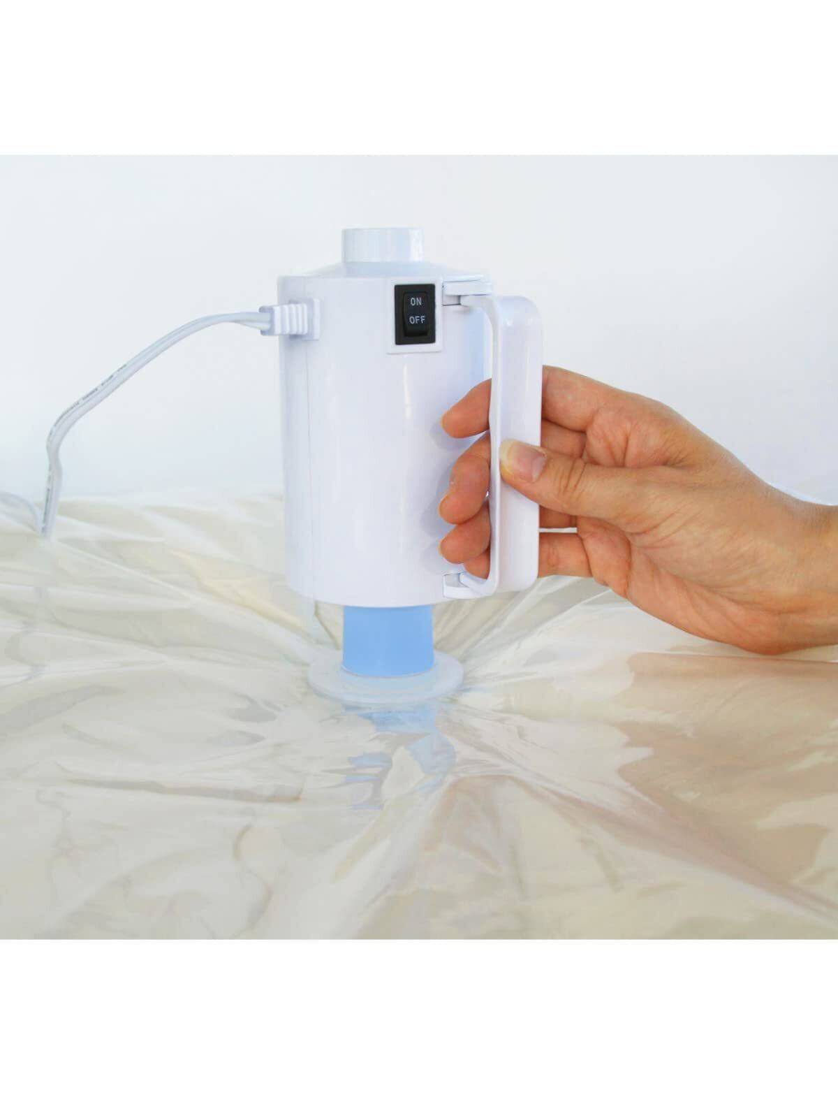 ●バルブ式圧縮袋を掃除機を使わず電動簡単スピード吸引。掃除機に負けない吸引力でスピーディに圧縮ができる