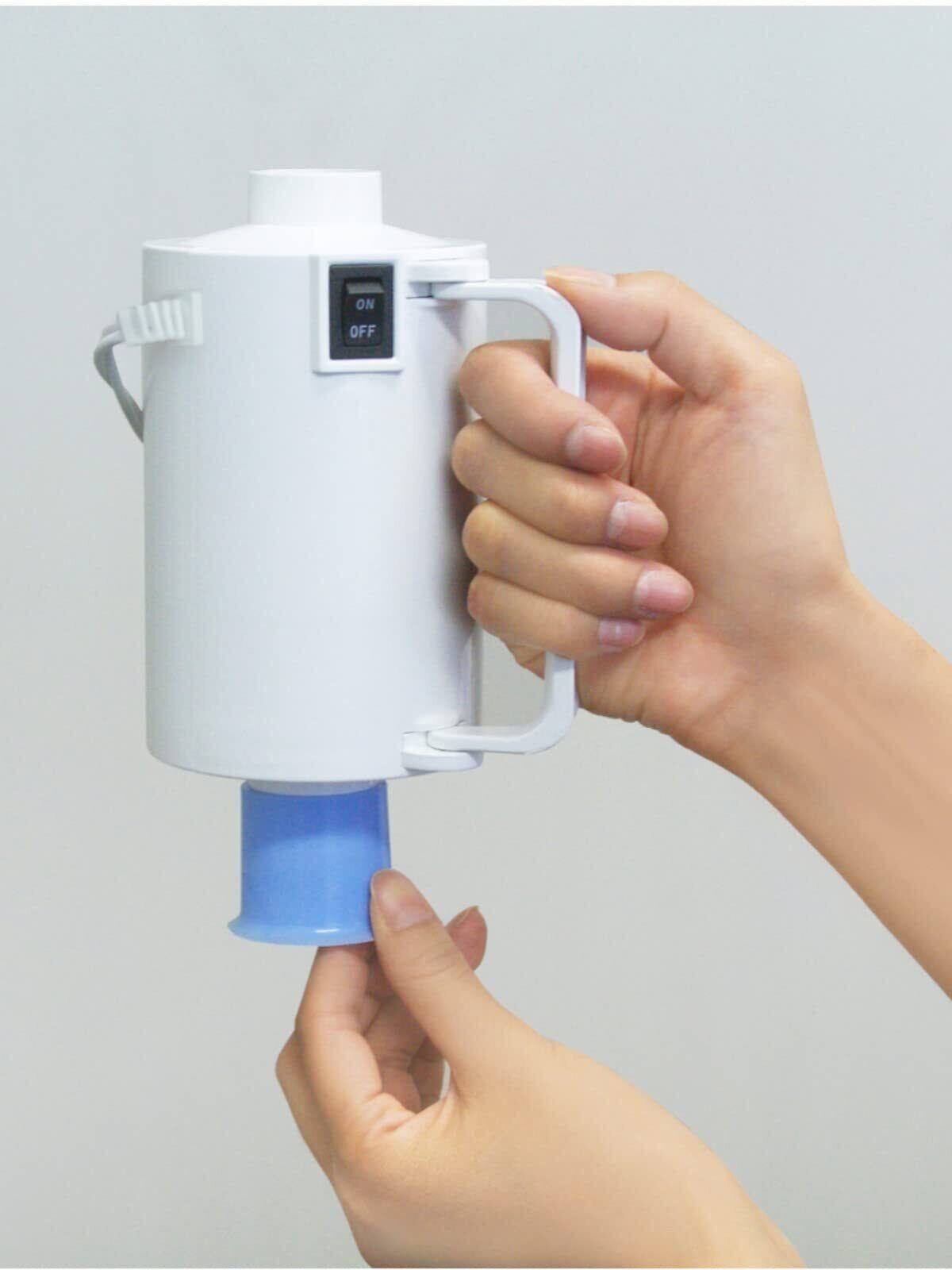 ●電動ポンプQ-PONは630gと軽量・コンパクト設計なので、女性でも片手でラクラク持つことができ、置き場所を取らずに収納することが可能