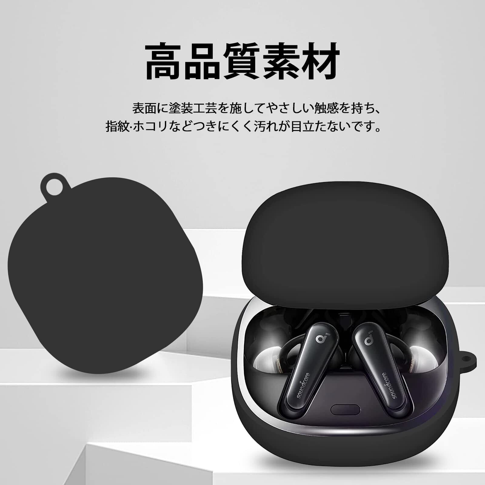 CABOBE for anker soundcore liberty 4 ケース【カラビナ付き】 アンカー サウンドコアリバティ4 ケース シリコン ケース 軽量 薄型 耐衝撃 滑り止め 保護カバー 落下防止 キズ防止 紛失防止 防塵 充電便利 anker soundcore liberty 4 専用 ケース (ブラック)