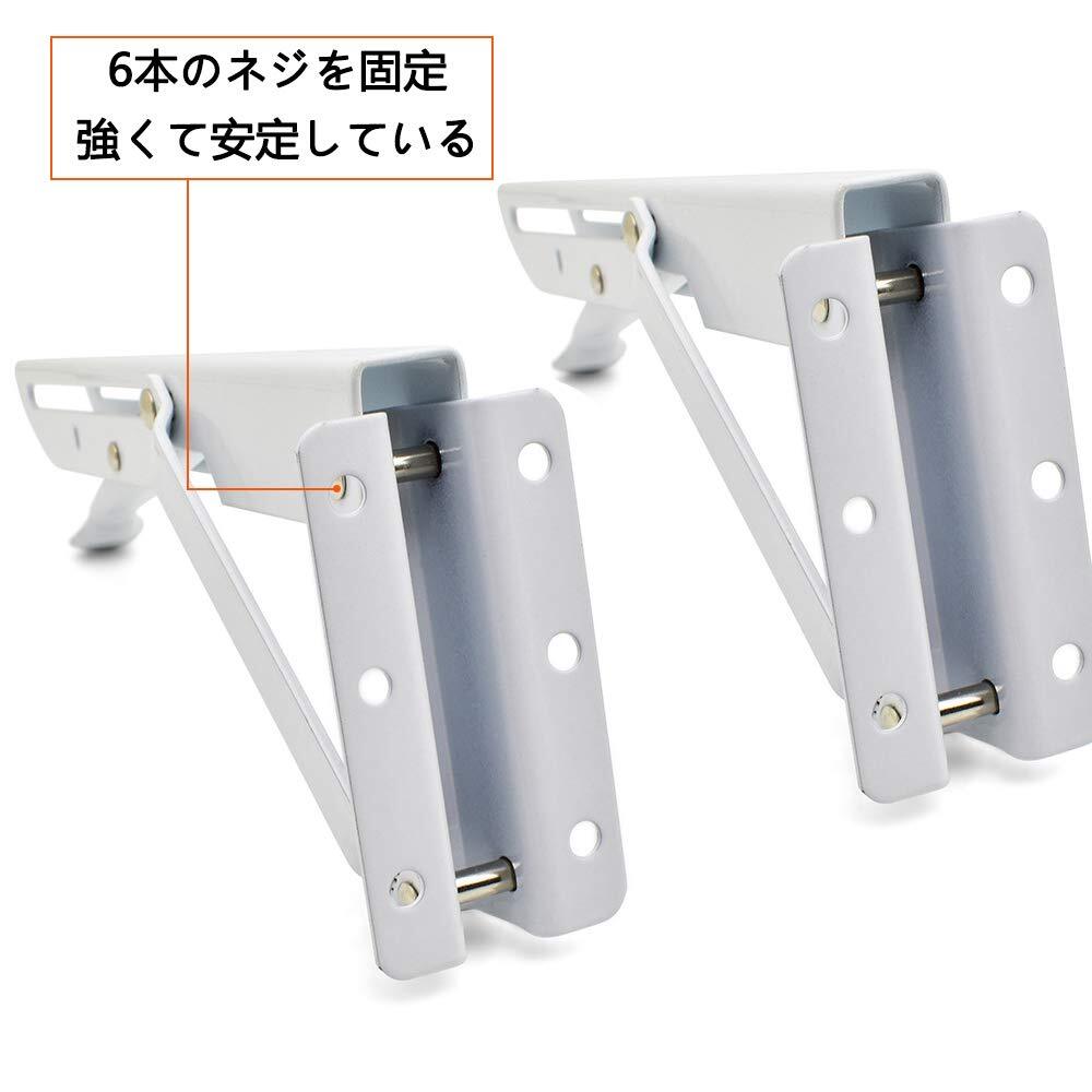 【折りたたみ式で省スペース】:取り付けはネジで固定すれば完了されます。折りたたみ式の棚受けブラケットで、壁に掛けていても、使わない時に折りたためます。よりスペースを節約できます。(ご注意:折畳時に指を挟まないように気をつけてください。)