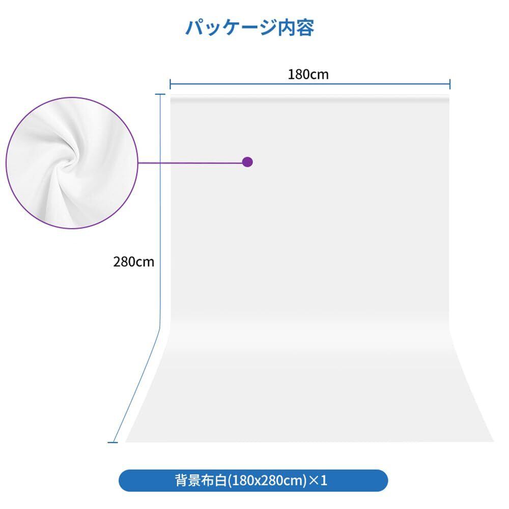 【プロ級の背景布】白い背景布は100%のポリエステル材質を採用し、綿よりシワが目立たなく、垂れ感がよいです。オーバーロックで縫製、糸が抜けにくいです。素晴らしいスタジオの効果を提供できるため、専門の撮影スタジオにも適用します。