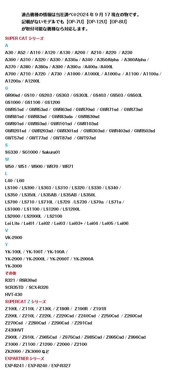 適合機種の情報は当社調べ※2024年9月3現在の物です。記載がないモデルでも【OP-7U】【OP-12U】【OP-8U】が取付可能な機種なら対応します。