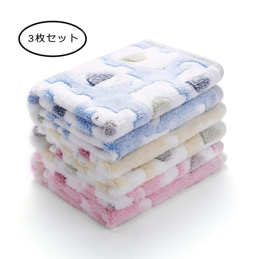 luciphia 3枚セット ブランケットペット用 毛布 犬猫 マット タオル ソフト 洗える フランネル 暖かい ふわふわ 秋冬 防寒(象柄 M:76x52cm)