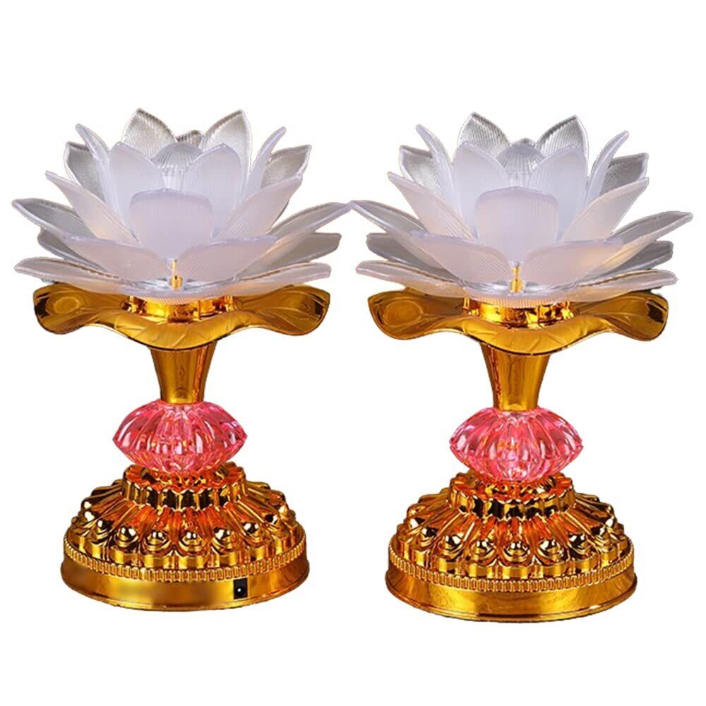 RAYWILL 蓮花 仏花 蓮の花 仏具 ロータス 蓮 造花 LED 7色変化 2個セット 2WAY給電対応 はすはな 仏壇 仏具 仏前 法事 法要 お盆 命日 飾り 照明一対 (White)