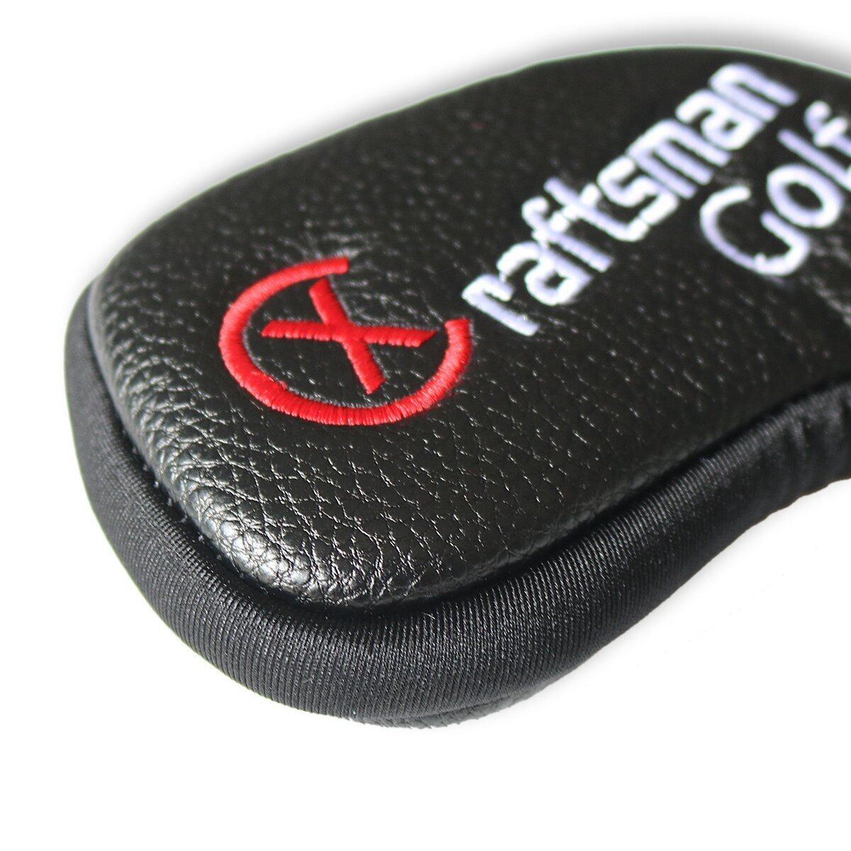CRAFTSMAN(クラフトマン)ゴルフアイアンカバー ウェッジカバー ファスナー開閉 ロングネック セット 11枚入り(4~9、P、A、S、L、X) ヘッドカバー クラブカバー カラフル数字番号刺繍 合成レザー製 ブラック レッド