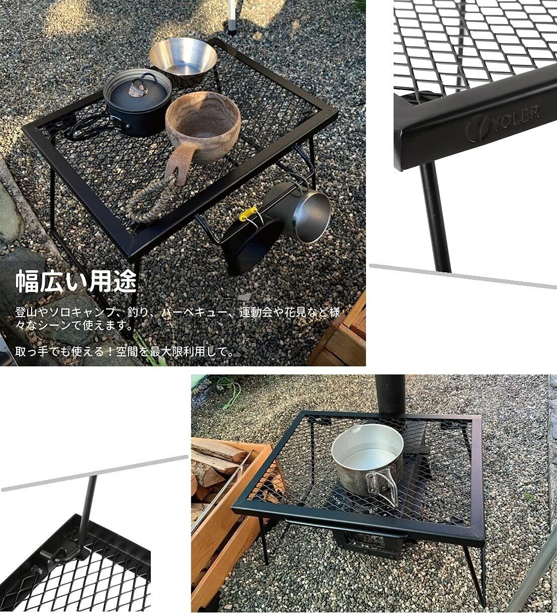 ヨーラー(YOLER) 焚き火テーブル メッシュテーブル キャンプ 折りたたみ アウトドア テーブル ロータイプ ごとく マルチスタンド 頑丈 ソロキャンプ 専用キャリーバッグ付 43×32×26cm