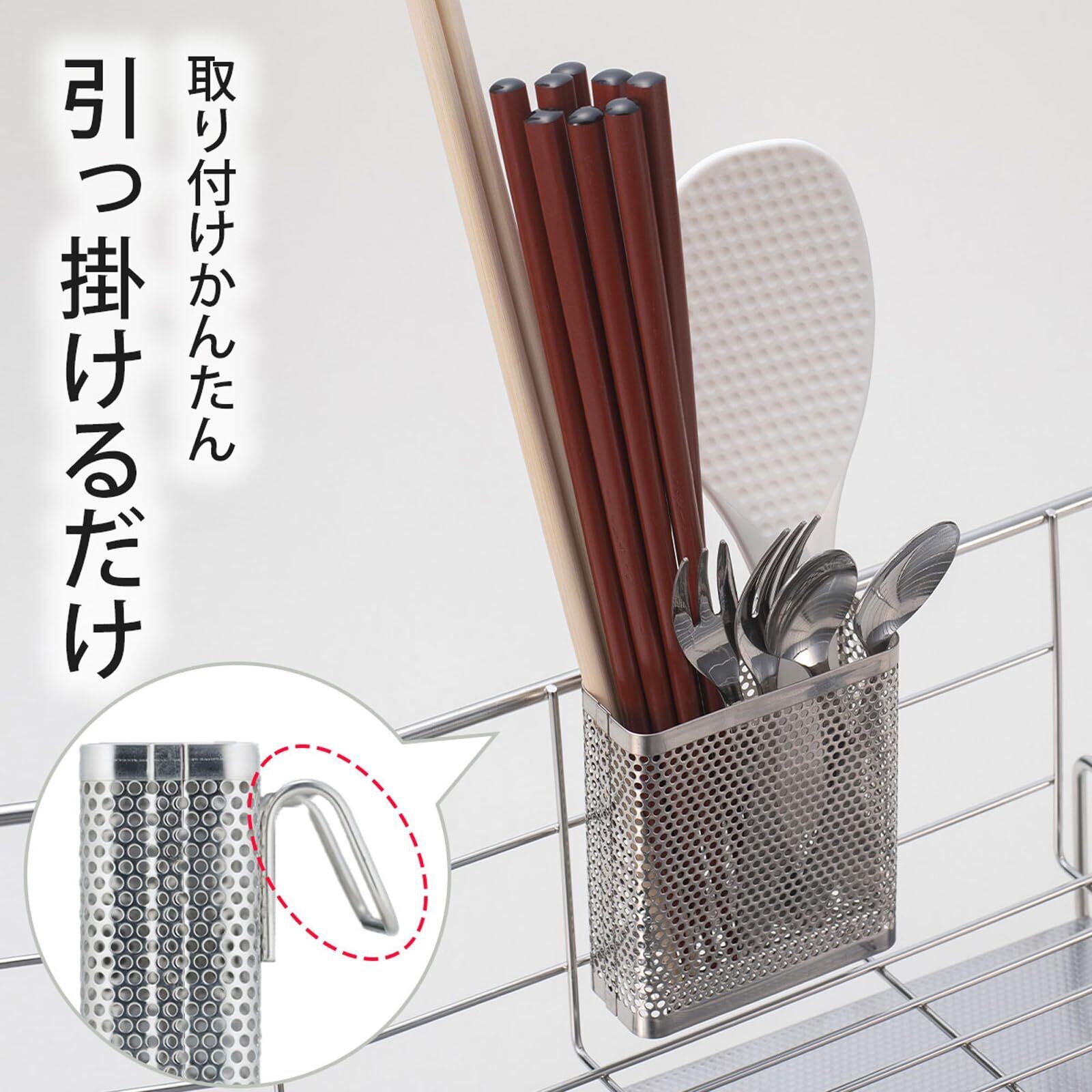 下村企販 カトラリーポケット 水切りラック用 【日本製】 箸 省スペース 小物が落ちにくい 角型 スリム ステンレス 燕三条 41737