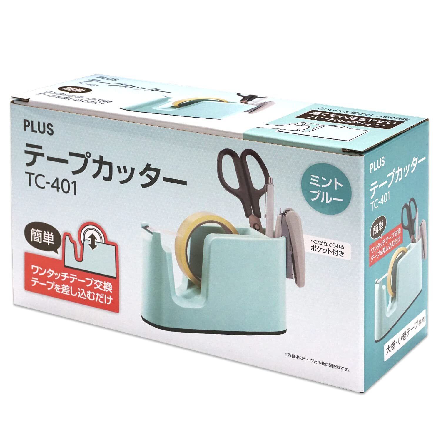 プラス テープカッター テープ簡単交換 ペン立て付 TC-401 ミントブルー 31-273
