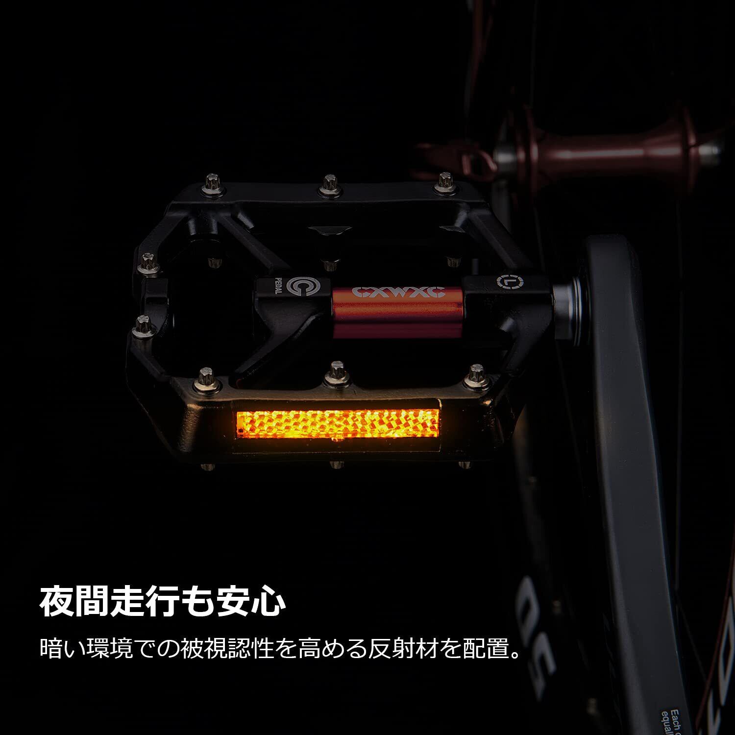 CXWXC 自転車 ペダル フラットペダル ロードバイク/クロスバイク/mtbなど用 リフレクター付 アルミ製(CX-930)