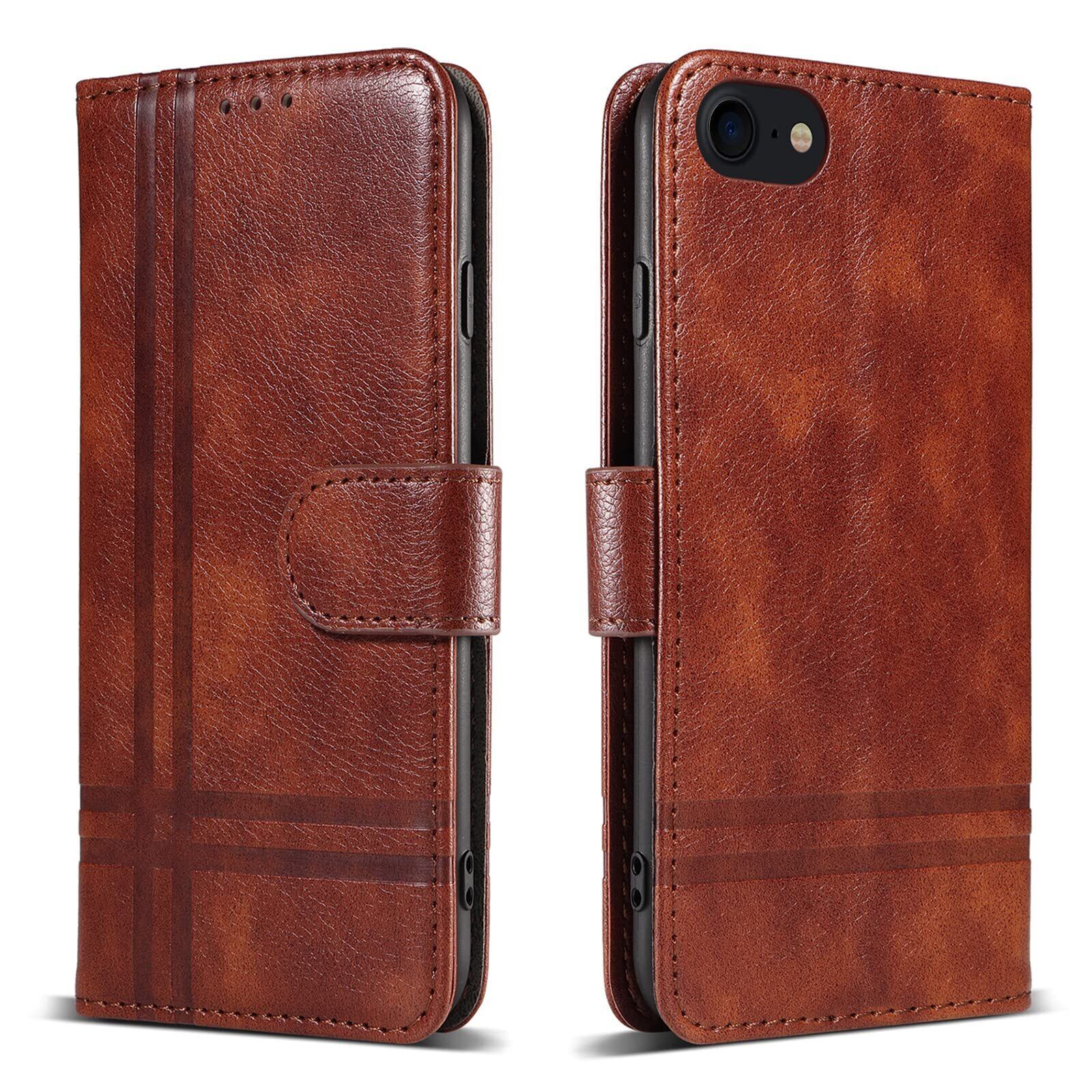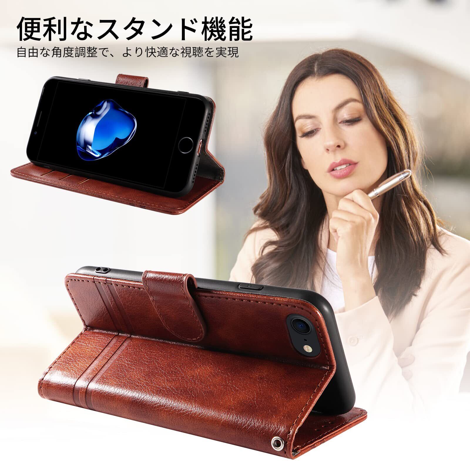 iPhone SE ケース 手帳型 第2世代 第3世代 iPhone8 iPhone7 iPhone se3 スマホケース 携帯カバー レザー 軽量 薄型 耐衝撃 耐摩擦 全面保護 マグネット式 カード収納 スタンド機能 se 4.7インチ対応 (Brownbutton, iPhone8 iPhone7 iPhone SE2 iPhone SE3)