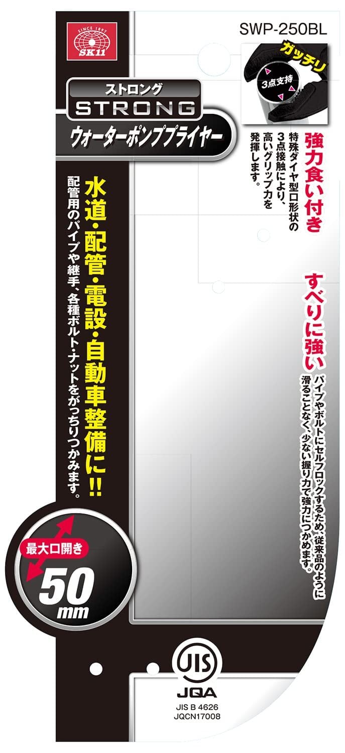 SK11(エスケー11) ストロングウォーターポンププライヤー 最大口開き50mm SWP-250BL ブラック