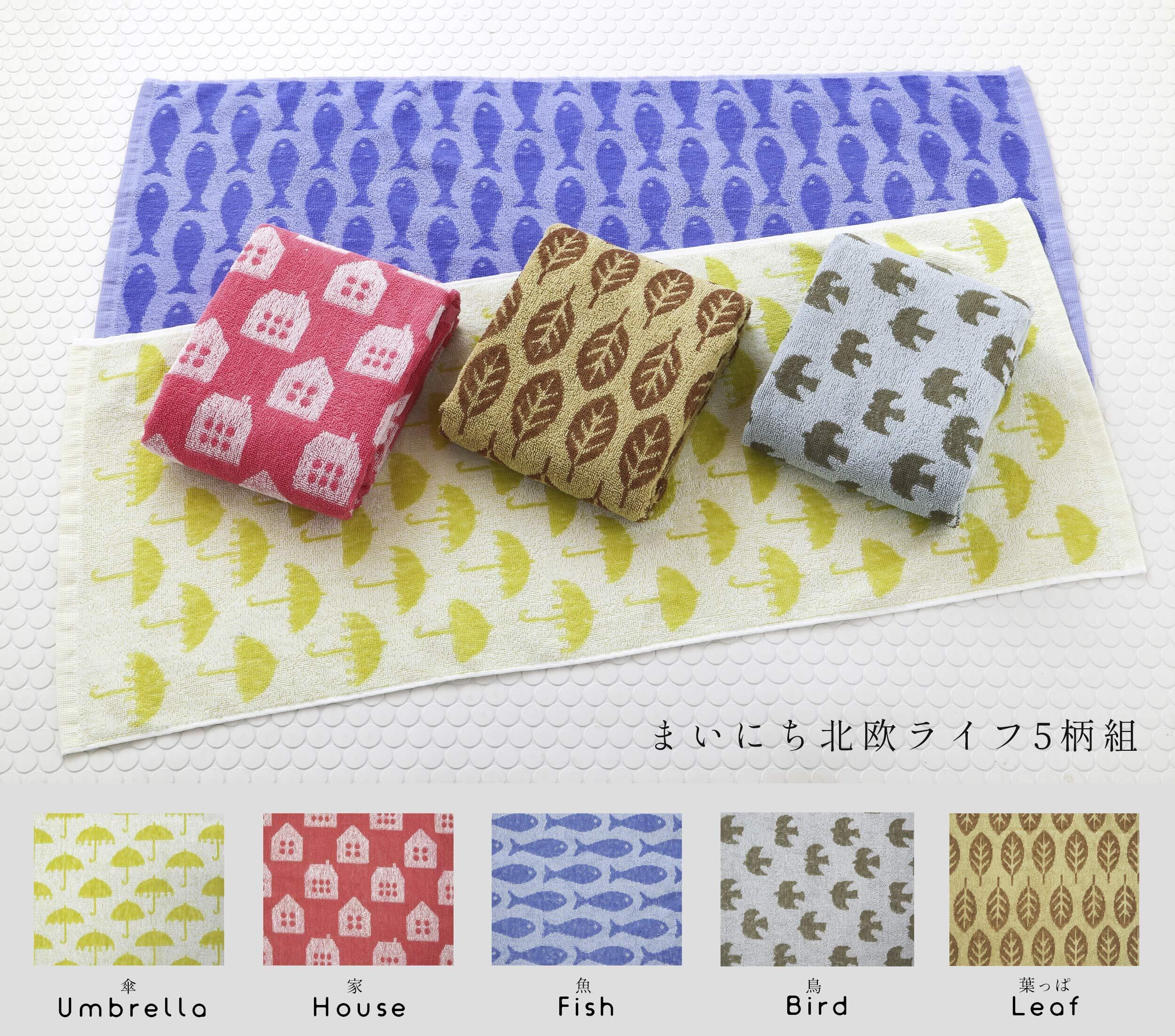Kosugizen フェイスタオル まいにち北欧ライフ 5色(5柄)各1枚入 34×80㎝ 北欧風モチーフ 乾きやすい薄手タイプ 5枚セット SV-2306