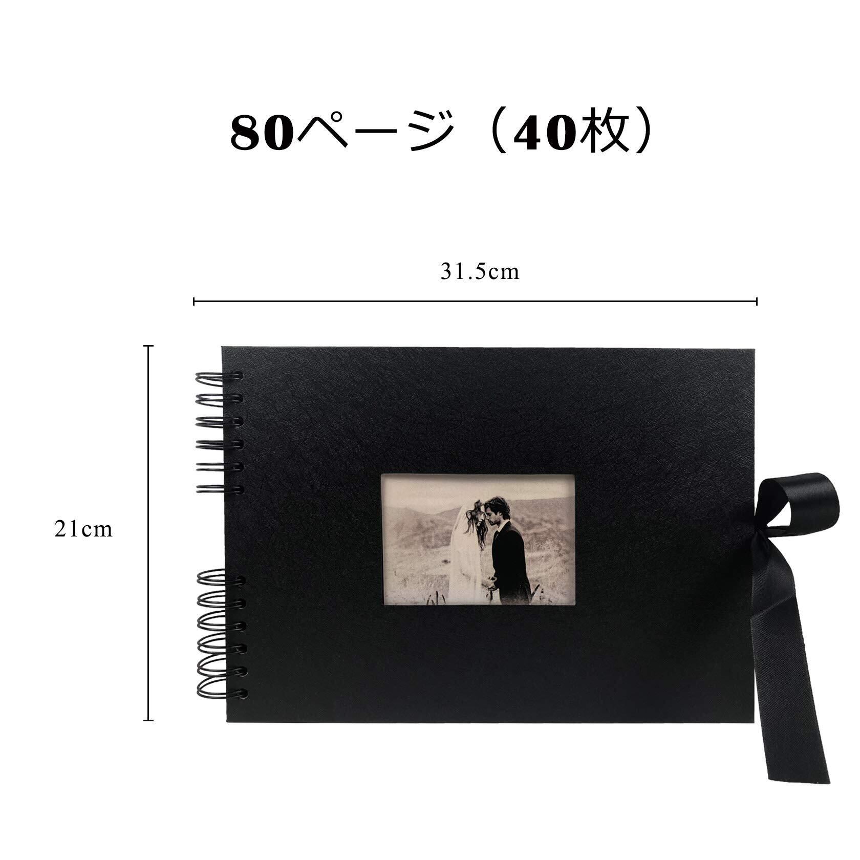思い出帳 手作り アルバム DIY黒台紙40枚 スクラップブッキング 手作りフォトフレームブック お友達へのプレゼントや結婚式のフォトブック (黒)
