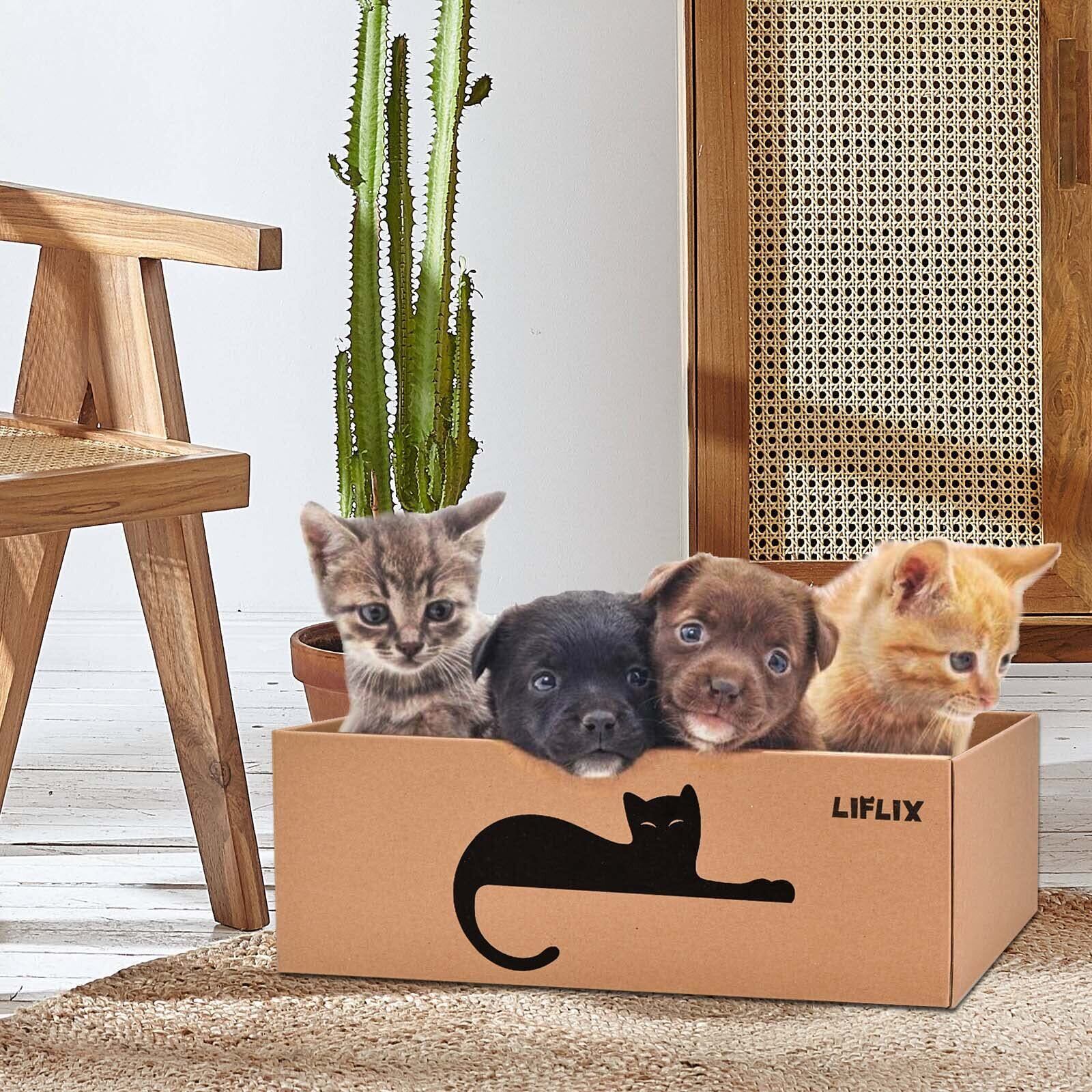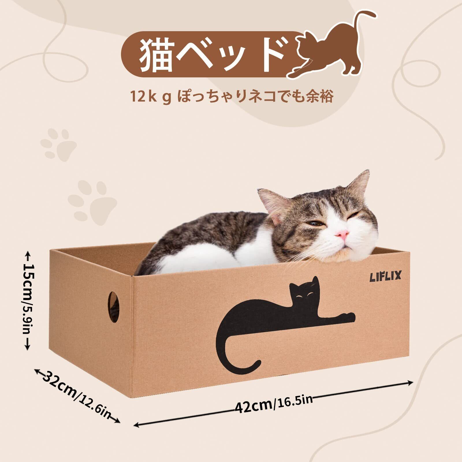 LIFLIX 猫 爪研ぎ 段ボール ダンボール箱に猫爪とぎ5枚入り 両面使い 猫ベッド 経済的 掃除楽 42×32×15cm