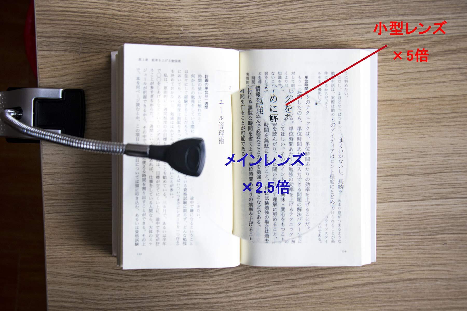 「2.5倍&5倍一体化」:2.5倍のメインレンズと、5倍の小型レンズ、一本両用