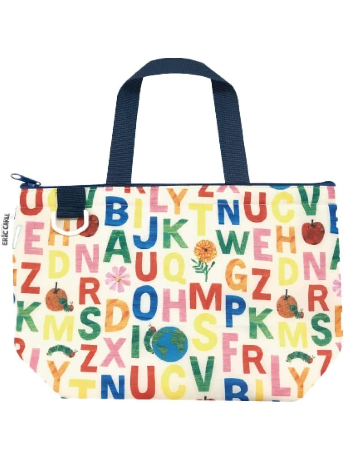 サンタン はらぺこあおむし 保冷 保温 ランチバッグ 大容量 保冷バッグ トート 弁当 弁当箱 お弁当袋 大人用 こども用 男女兼用 通学 通勤 アウトドア (01.アルファベット柄(NV))