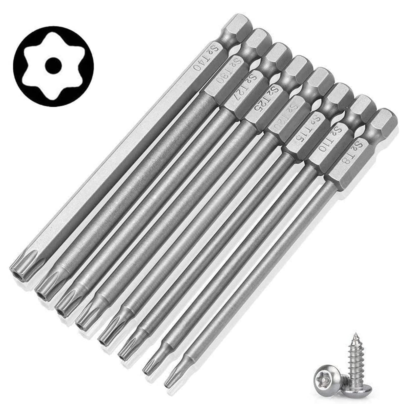 Bestgleトルクスドライバー トルクス星ネジ用ビットセット 8本組磁気六角ドライバービットセット100mm 六角軸 6.35mm電動六角トルクスインパクトドライバーT8-T40六角ビットセット トルクスネジ用ビット電動ドリル ビット工具