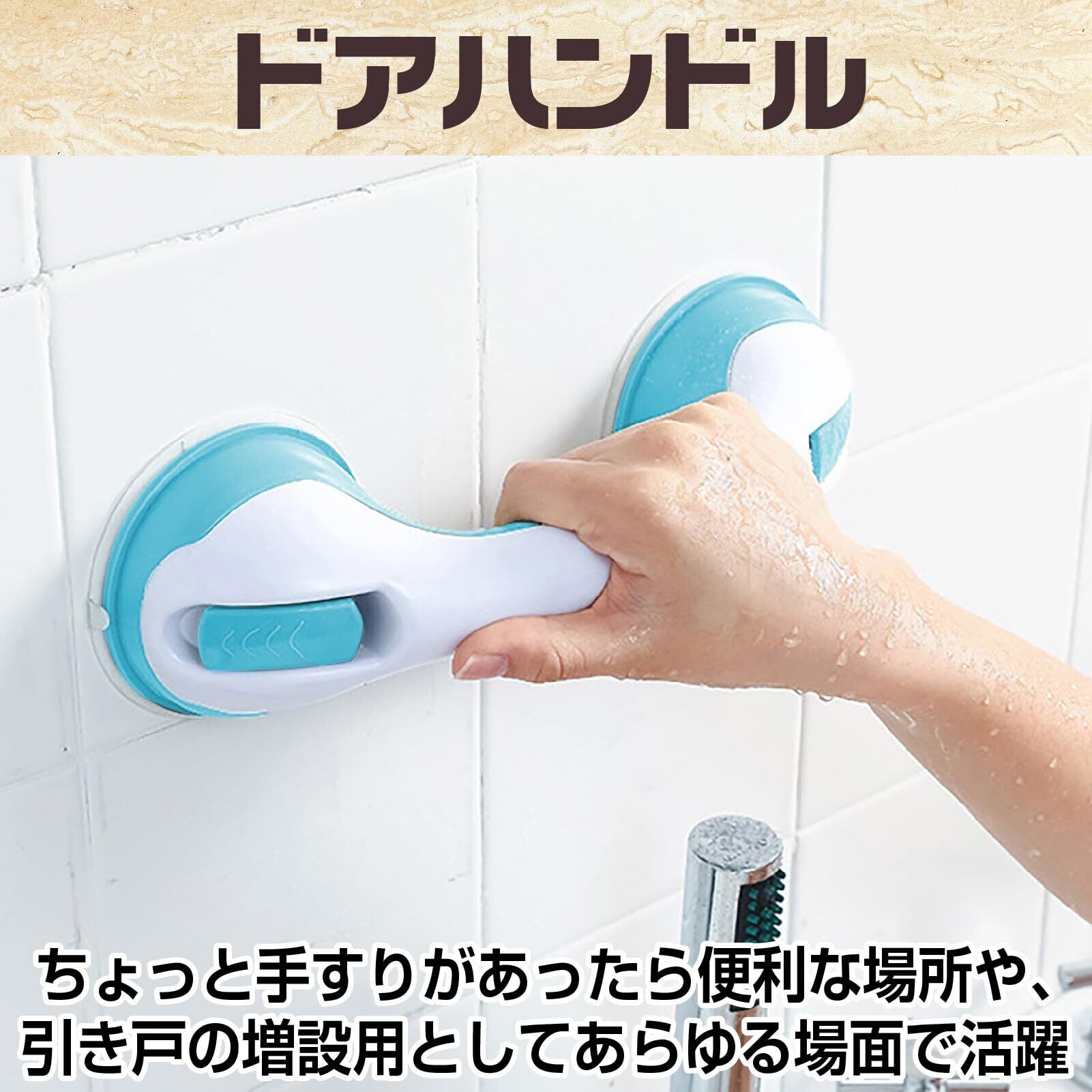 【適用範囲】玄関やバスルームのすべり止め用のセーフティハンドルとして、バスタブなどに取り付けて入浴時の転倒防止の支えとして、あるいは引き戸の取っ手やドアハンドルとしてもお使いいただけます。 介護が必要な方や、高齢者、小さなお子様がご利用になられる場合は、介護者または保護者 の方も付き添っていただけますようにお願いします。