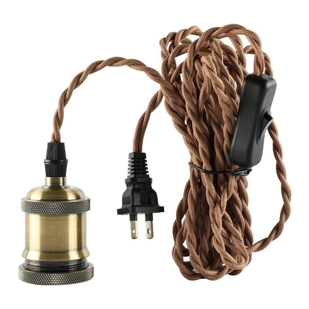 xydled ペンダントライト 電球ソケット 1灯 コンセント式 真鍮メッキ古仕上げ E26 led対応 コード長4.5m ソケット照明 レトロ アンティークライト 電球別売り