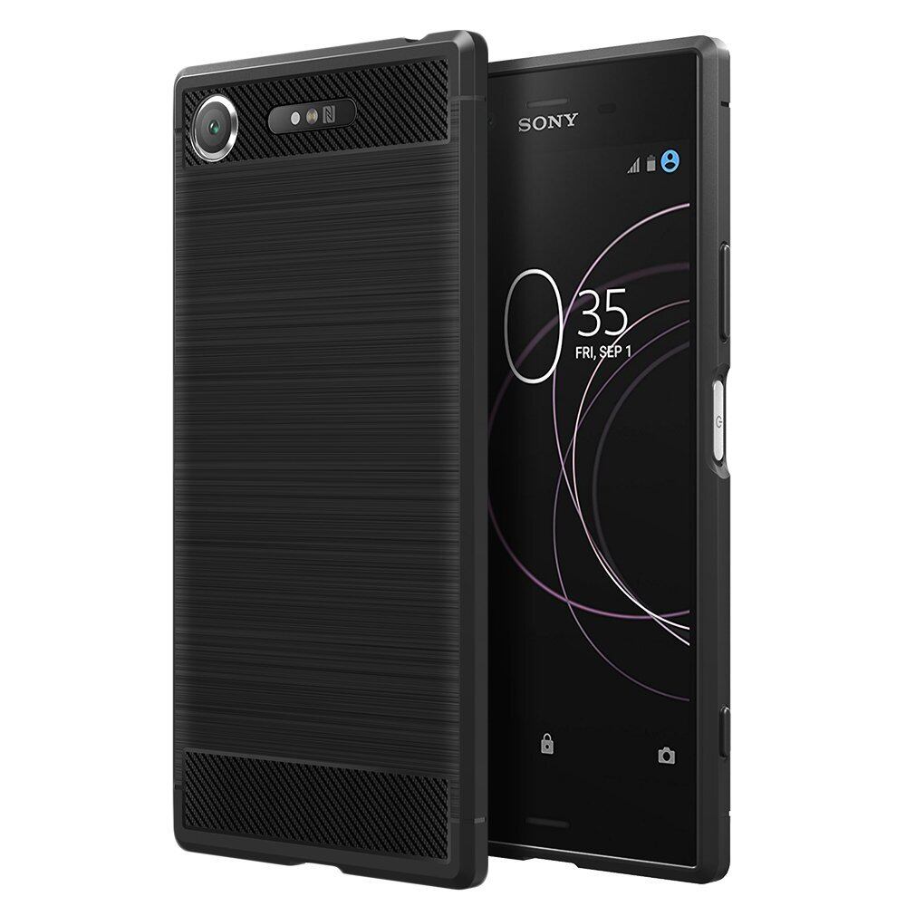 Simpeak Sony Xperia XZ1 対応 ケース ラギッド Xperia XZ1 適応 炭素繊維カバーSO-01K SOV36 対応 TPU保護バンパー 弾力性付き (ブラック)