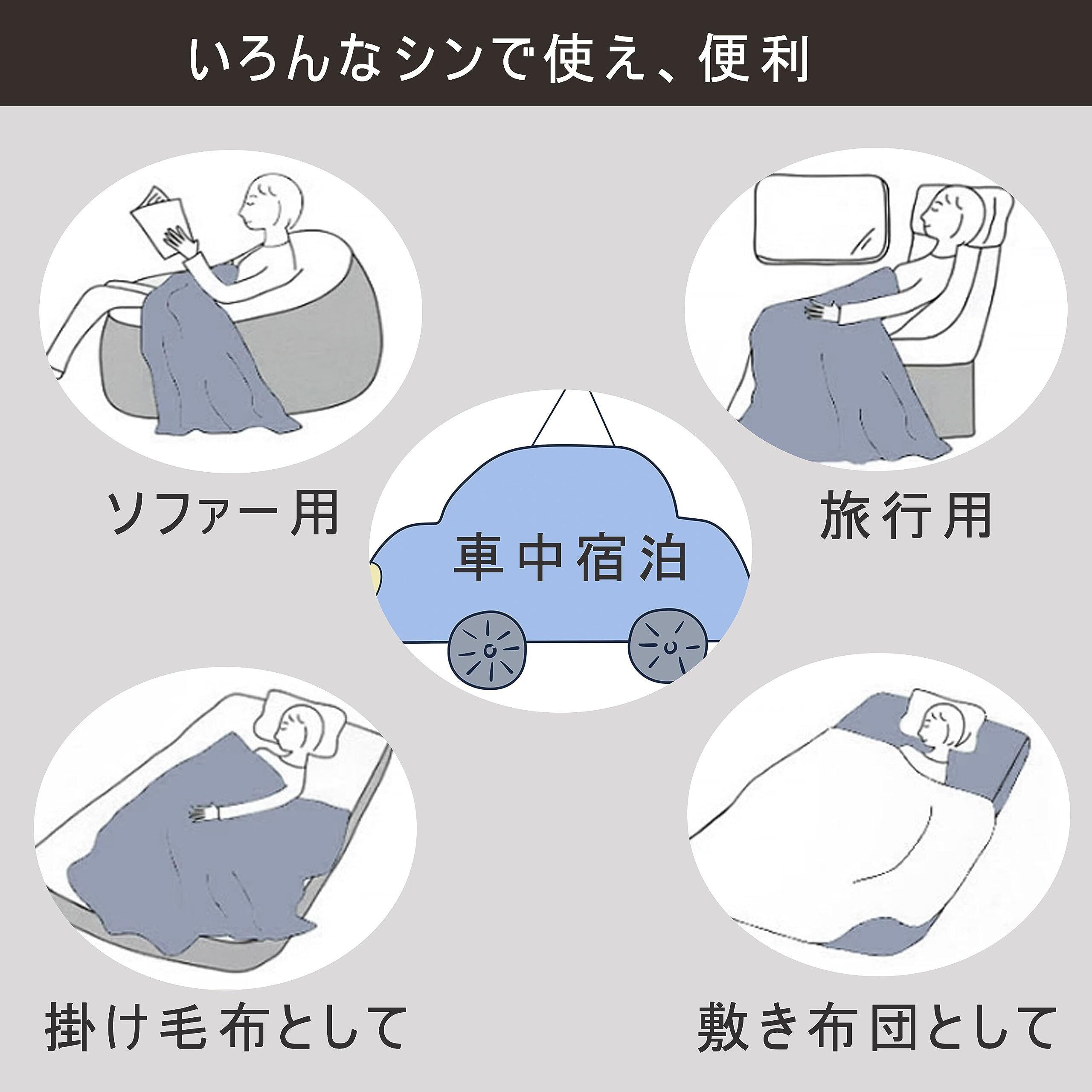 【様々なシーンで活躍】夏場はひざ掛けとしても、肩かけとしても冷房対策に、 秋冬の時は掛け布団の間に挟むように使うことで保温力を実感できます。また、敷き布団の上にシーツのように敷いても温かく眠れます。 また、敷き毛布・掛け毛布・肩掛け毛布・ひざ掛け毛布・布団の中掛け・ソファー用毛布・ 旅行用毛布・お昼寝用毛布・車用毛布・子供用毛布・ペット用毛布として、いろんな場合で使用されるブランケットです。