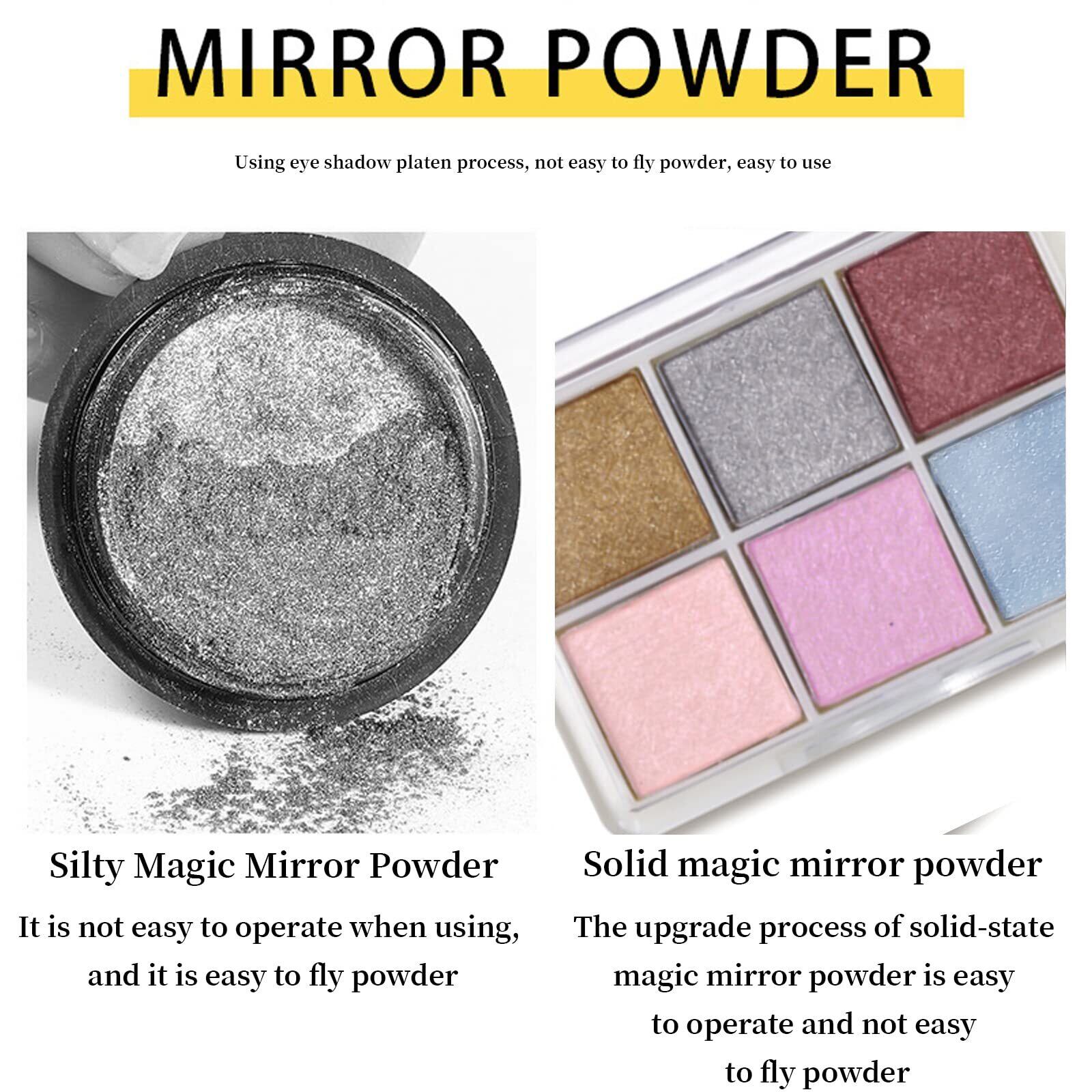 ミラーパウダー 固形 ネイルパウダー 6色 パレット オーロラパウダー ミラーネイル パウダー ネイルアート レジン ジェルネイル メタリックネイルパウダー チップ付き (E)