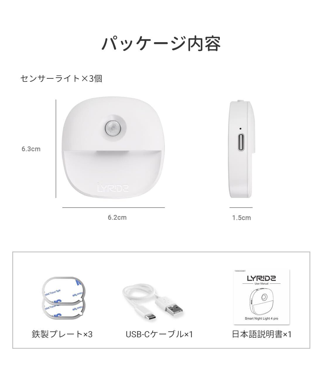 LYRIDZ 人感センサーライト usb充電式 足元灯 足元ライト 無段階調光 センサーライト led 常夜灯 3モード フットライト 電球色 省エネ 薄型 廊下 寝室 玄関 階段 納戸 室内用 【3個入り·日本語取説】