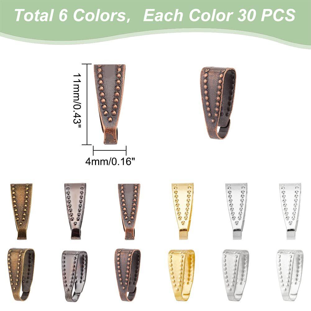 PH PandaHall 約180個/箱 6色 ブラス バチカン 9.93x3.4mm 留め金 接続金具 ピンチ ベイル パーツ ネックレス ペンダント ビーズクランプ ジュエリー用 アクセサリーパーツ 手作り素材 材料 混合色