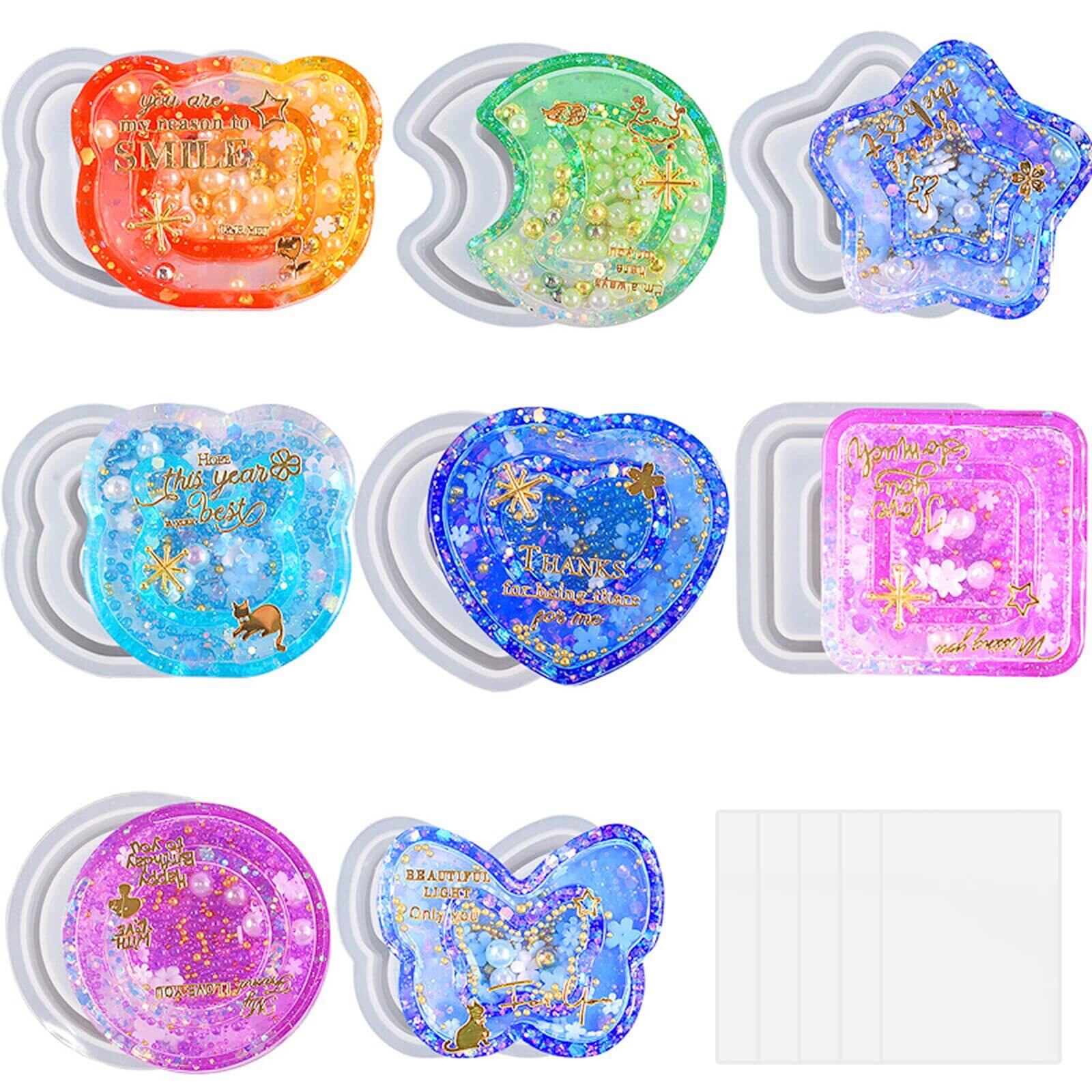 【8種類】流れ砂型のモールド合計8種類。星、ハート、月...さまざまな形状とサイズがあるので色々とお楽しみいただけます。