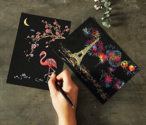 【プレミアム素材】:私たちのスクラッチ画像は黒のコーティングと色付きのハードボードで作られています。材料は環境に優しく、安全無毒です。