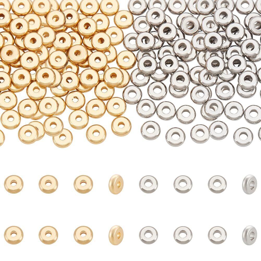 UNICRAFTALE 約100個 2色 6mm 円形 ロンデルビーズ 平型 ステンレス ビーズ フラットラウンドビーズ スペーサービーズ 金属ビーズ メタルビーズ ビーズチャームパーツ ブレスレットネックレス用 アクセサリーパーツ ジュエリー作り クラフト用品 手作り素材 DIY材料