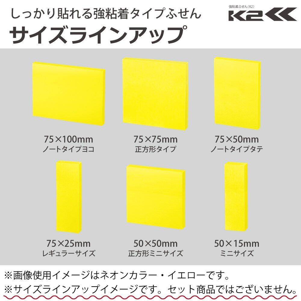 コクヨ 付箋 強粘着 K2 50mm×50mm ネオンカラー 90枚×10冊 7色 K2メ-KN5050X10