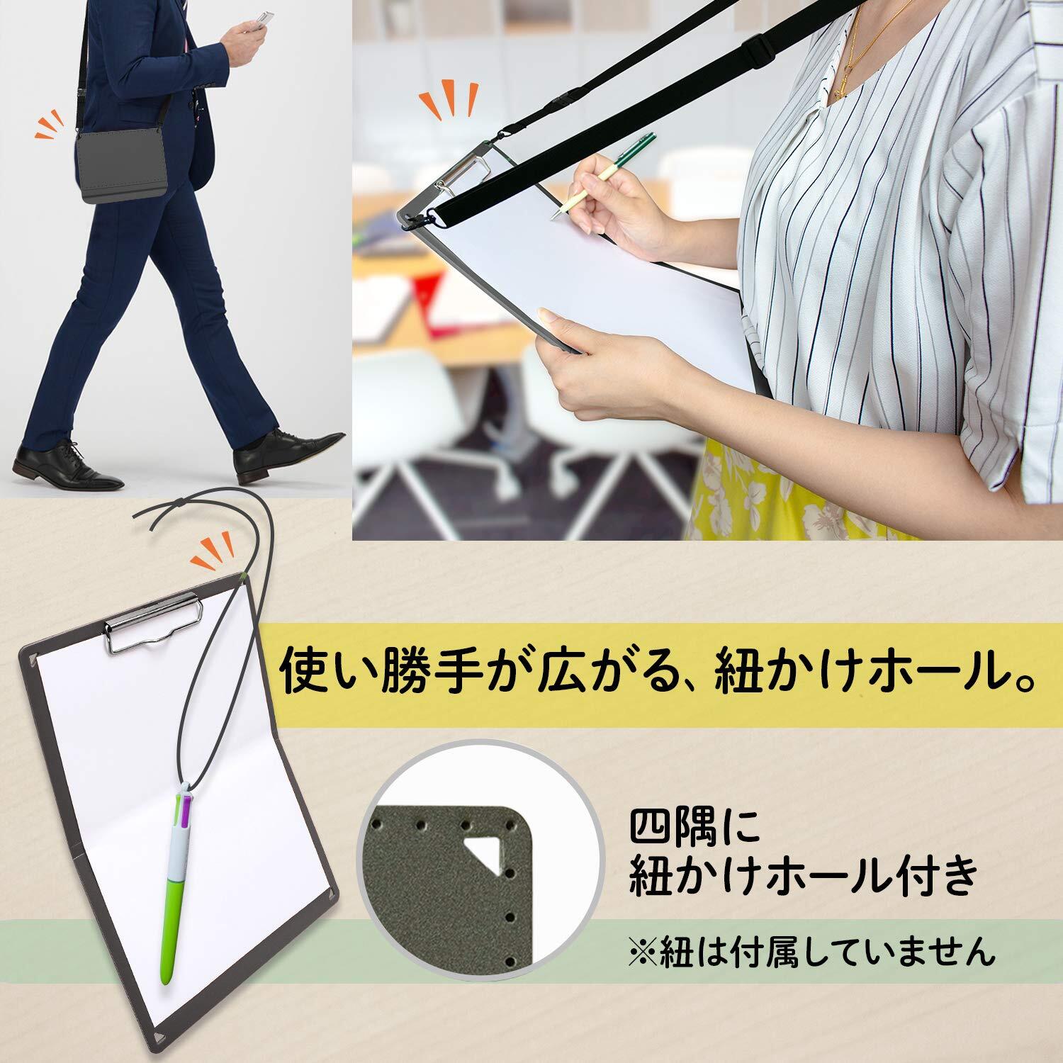 プラス A5サイズにおりたためる A4クリップボード+ ダークグレー 83-161 専用ストラップ 付