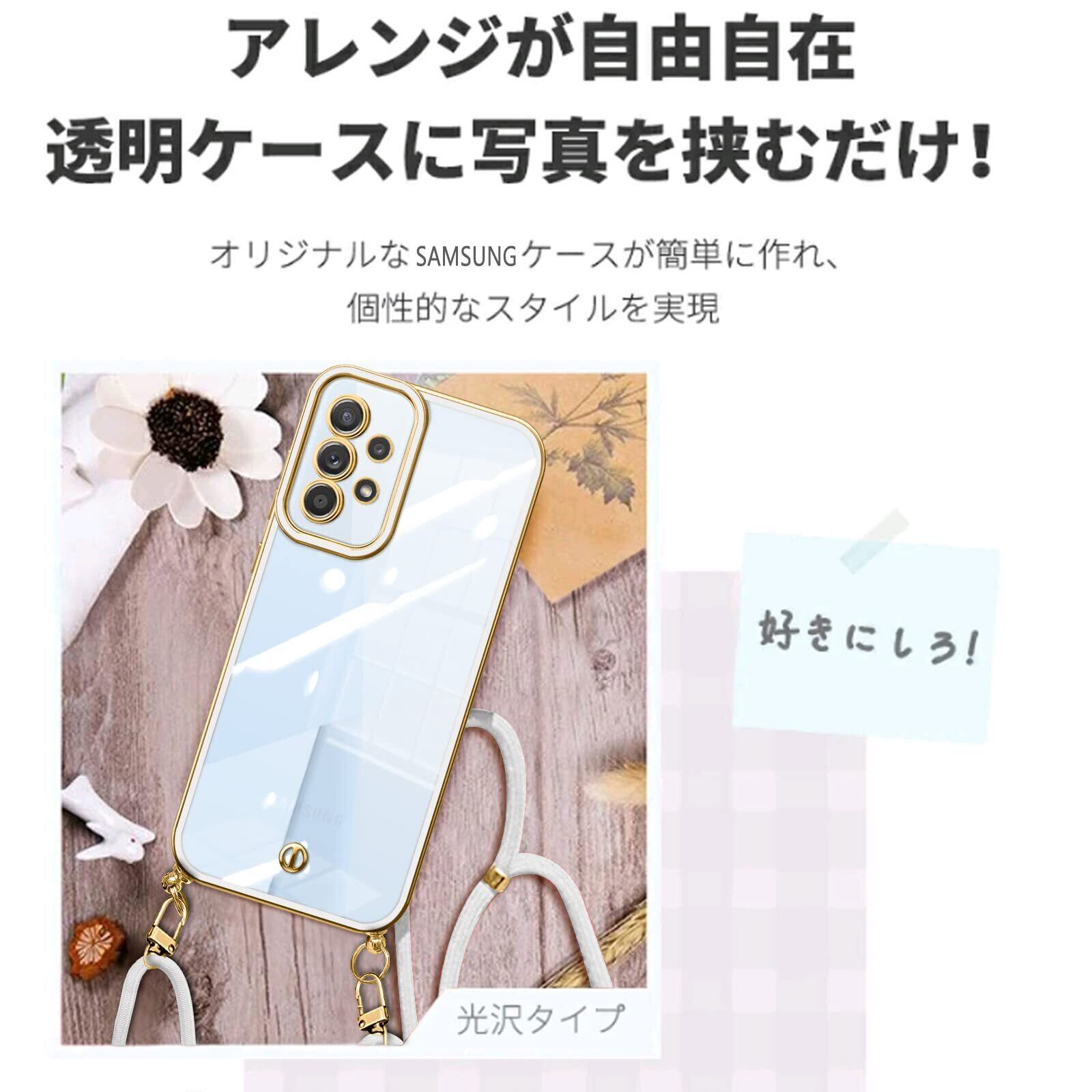 Galaxy A52 5G ケース クリア TPU ショルダー カバー SC-53B SOG05 スマホケース 肩掛け 首掛け 斜めかけケース 可愛い かわいい 韓国 透明 薄型 耐衝撃 シリコン メッキ加工 TPUバンパー ギャラクシーA52(ホワイト)
