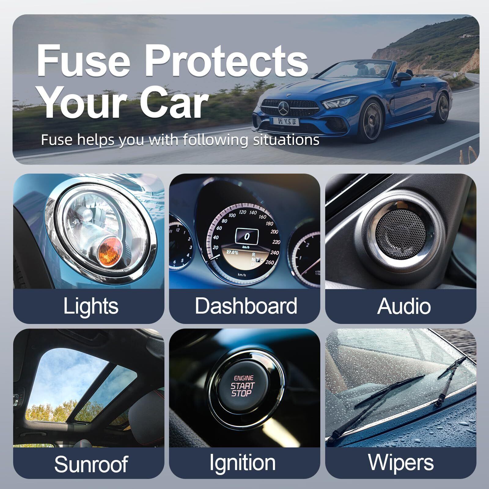 【合理的な数のマッチング】-- 市場調査データによると、10A / 15A / 20A / 25A電流仕様のヒューズ数を追加、その他のあまり使用されていないヒューズの数を減らしました。 数量もリーズナブルで、ヒューズの使用時間が長くなります。