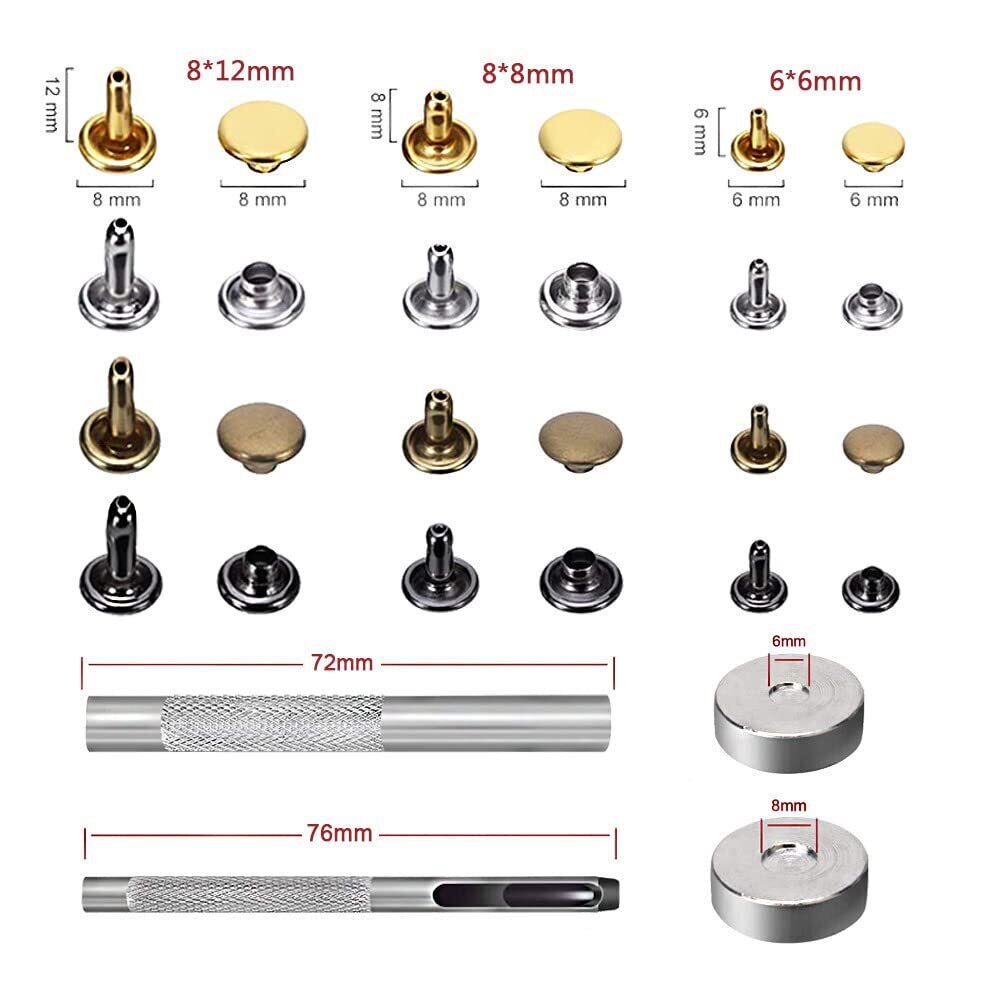【使い方は簡単】手芸、修理用カシメセット!手芸用スタッズセットで、6/8/12mmのスタッズを取り付けるのに便利な工具とスタッズのセットです。使用方法は簡単!これは挟むだけで穴が開くから初心者にも使いやすいです。ハンドメイド作品簡単に飾るできます。
