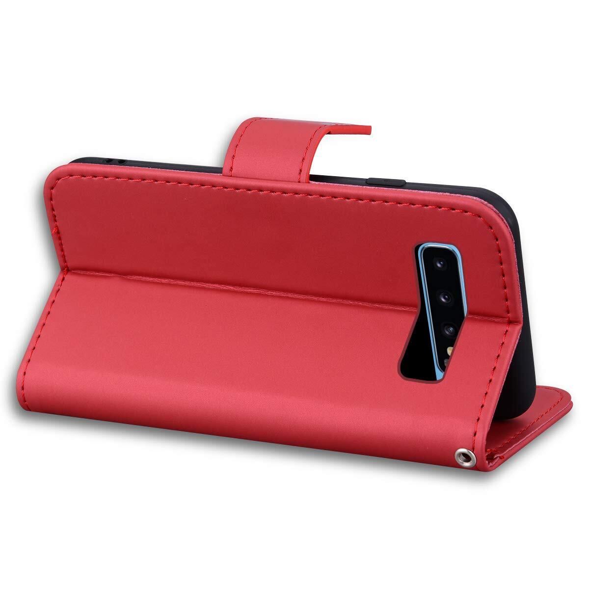 Ailisi 対応 Samsung Galaxy S10 ケース 手帳型 サムスン ギャラクシーS10 SCV41 au SC-03L docomo カバー 女性 人気PUレザー財布型 可愛いカバー 黒猫 かわいい 動物 耐衝撃保護ケース スタンド機能 カード収納 スマホケース (赤/猫)