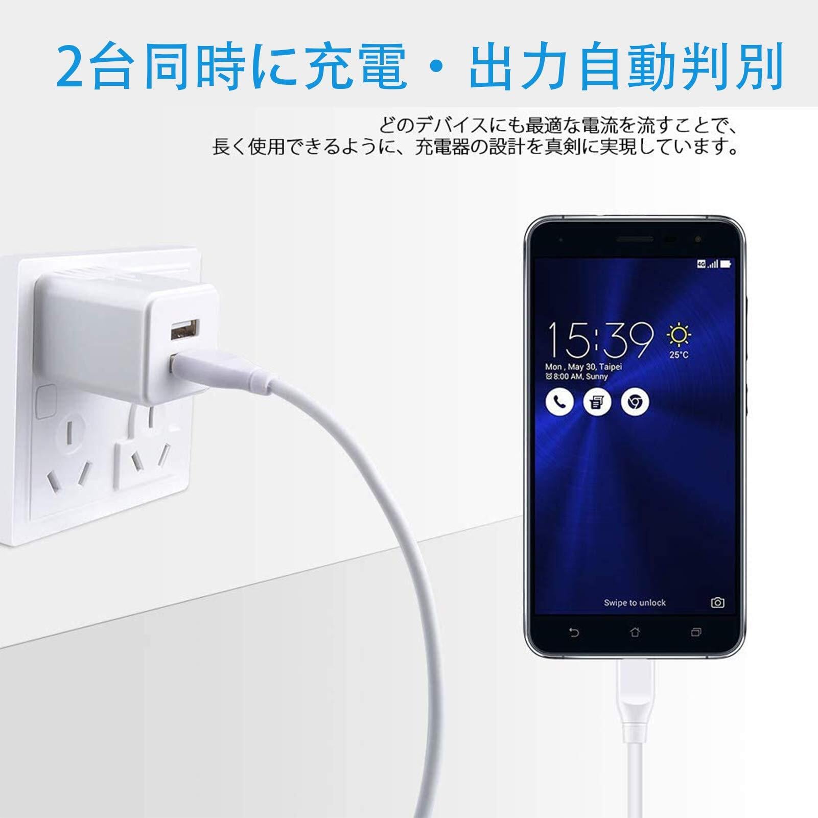 【2ポートUSB充電器*1個+type-Cケーブル1.8m*1本】急速充電器 USBコンセント ACアダプター スマホ充電器 タイプCケーブル アイフォン16充電用 usb電源アダプタ Type C充電器 アンドロイド充電器 ドコモ携帯充電器 Xperia充電器 Galaxy充電器 USB A to USB Cケーブルマホケーブル type cコード ホワイト