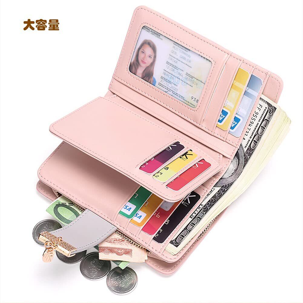 [AnberKK] 財布 レディース 二つ折り 本革 牛革 大容量 コンパクト 小さめ 多機能 収納 ジッパー 小銭入れ 短い ファッション プレゼント 人気 レザー(黒と白black)