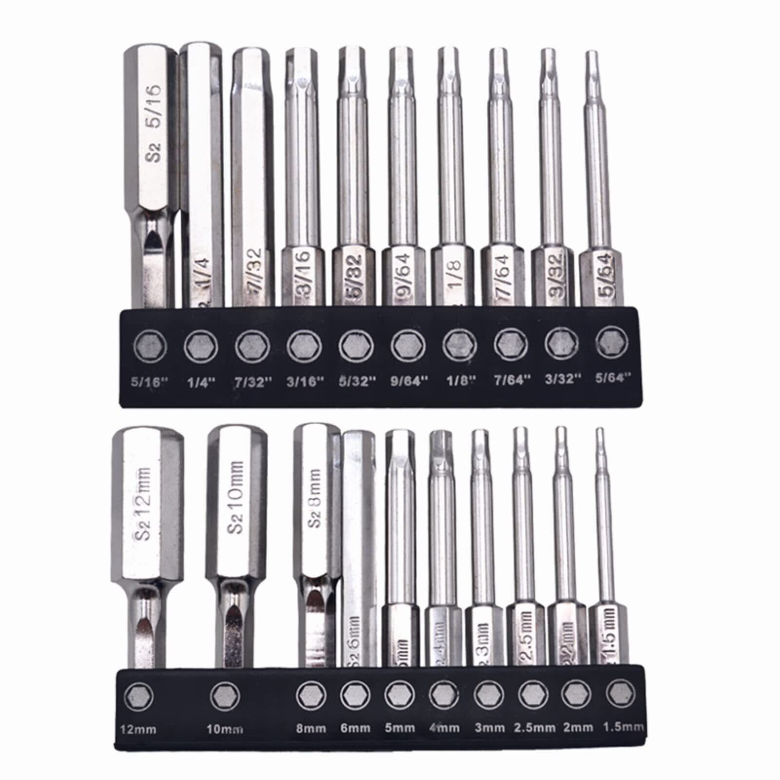【セット内容】ミリ表記:12mm、10mm、8mm、6mm、5mm、4mm、3mm、2.5mm、2mm、1.5mm。インチ表記: 5/16、1/4、7/32、3/16、5/32、9/64、1/8、7/64、3/32、5/64。20本セット。