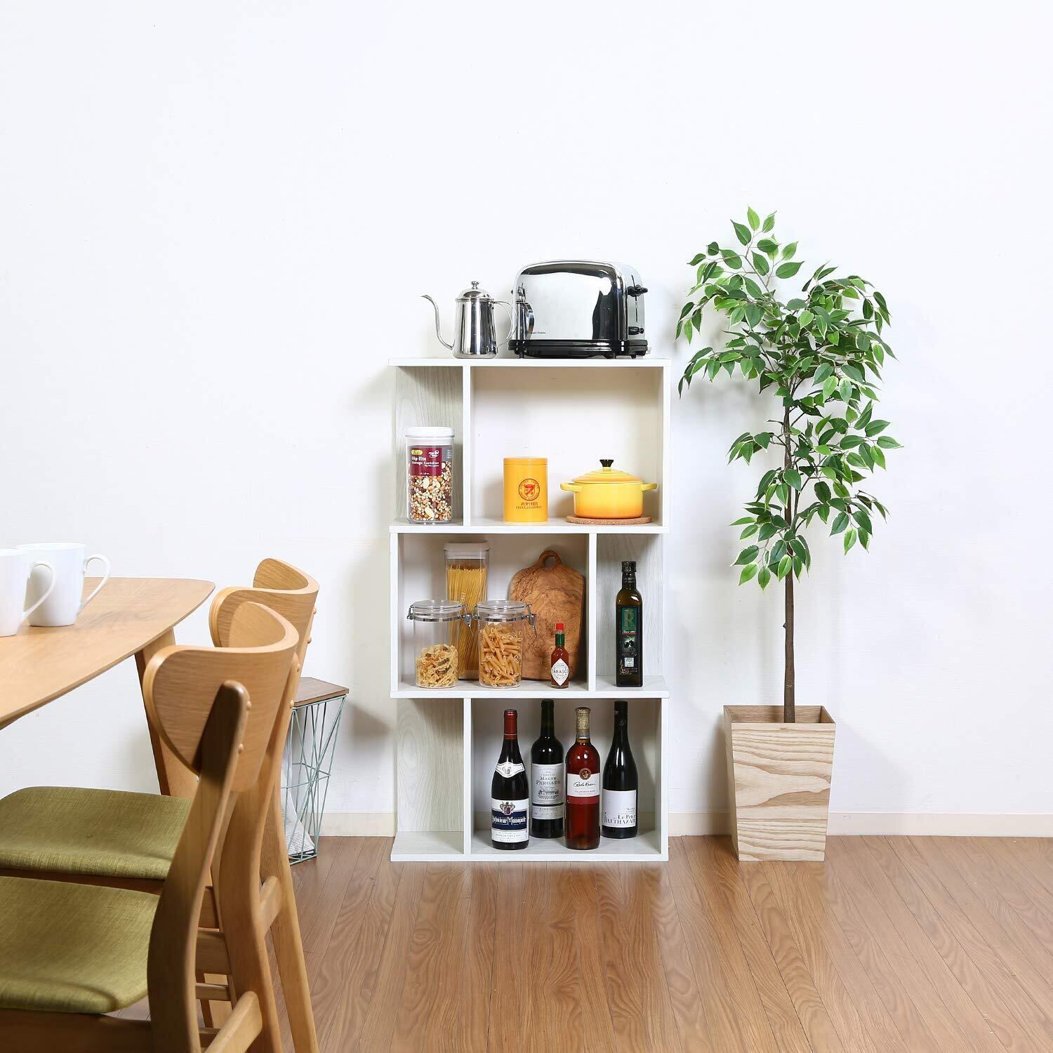 不二貿易 オープンラック シェルフ 3段 幅59×奥行24×高さ106cm ホワイトウォッシュ ディスプレイラック S型 組立商品 98712