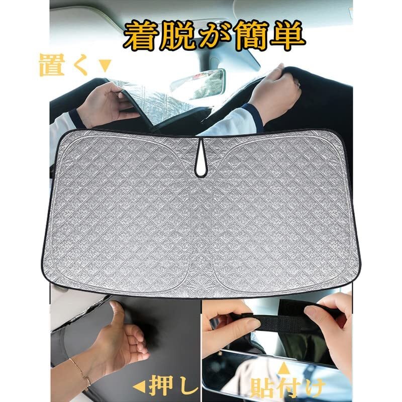 【2022年改良版&6層構造】車内の日光に当たると、特に夏のフロントガラスに強い日光が当たると、オーブンのような断熱効果があります。 長すぎると、機械の経年劣化や破損の原因になります。 本製品は、高密度傘生地、特殊断熱・紫外線防止生地、アルミホイル反射層、超厚手の高密度不織布を使用し、およびその他の高品質の素材。99%以上の紫外線を効果的に遮断します。
