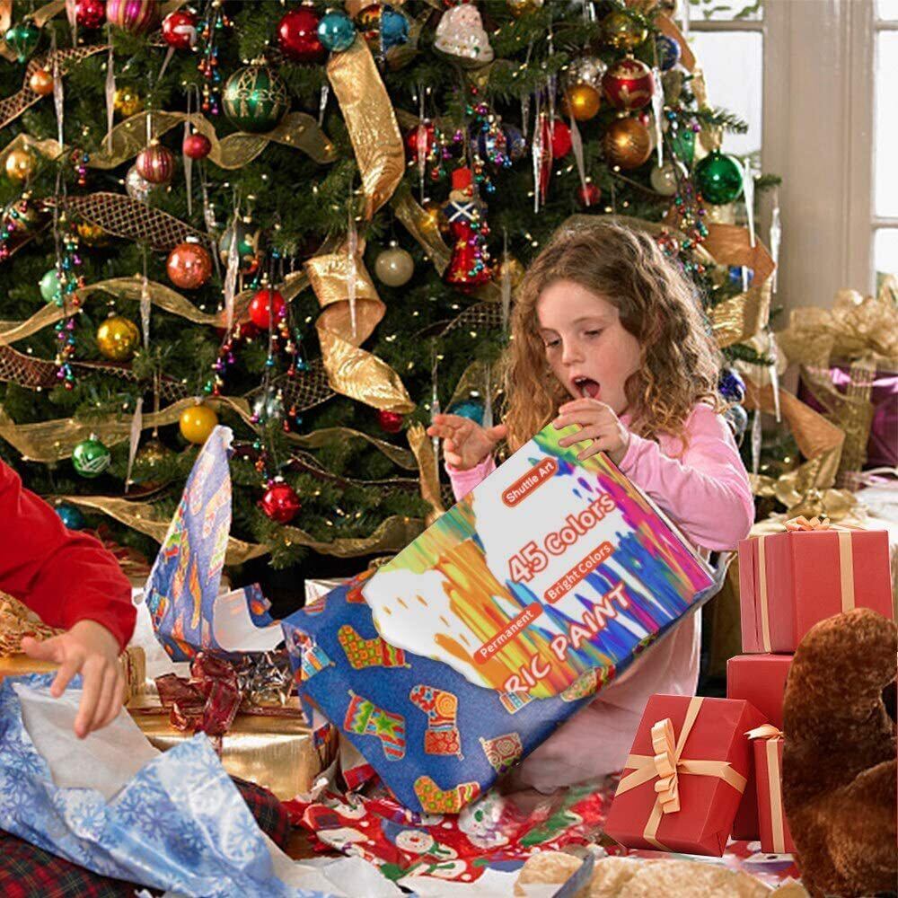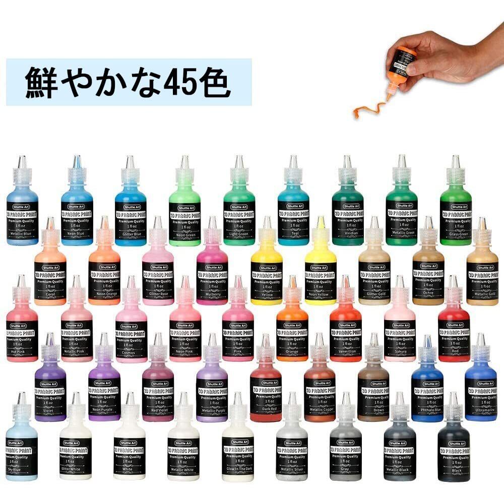 Shuttle Art 布用絵の具 3D 立体 45色セット 30ml 布えのぐ ファブリックペイント メタリックカラー ウォッシャブル 洗っても落ちない 耐久 ペイントブラシ・ステンシル・パレット付き DIY イラスト 落書き Tシャツ カンバス スニーカー 子供 プレゼント