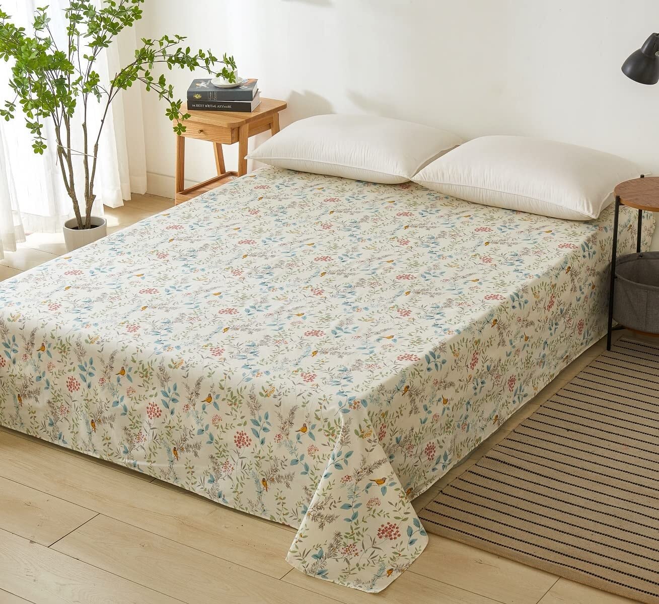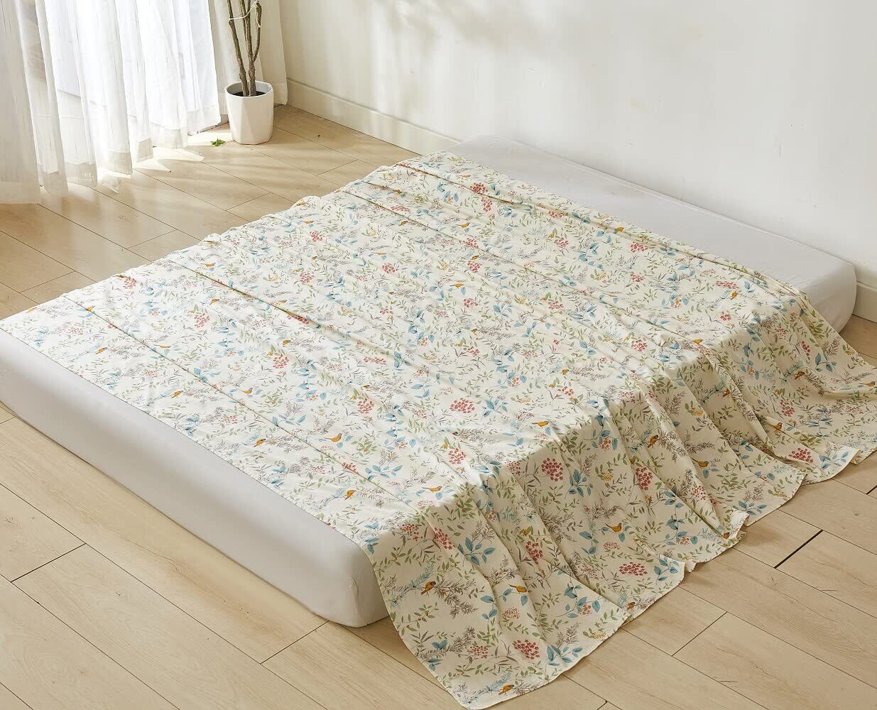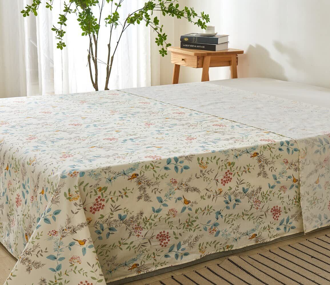 フラットシーツ キング 250x290cm 綿100% 敷きシーツ ベッドシーツ マットレスカバー アッパーシーツ 防ダニ 抗菌 花柄