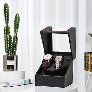 ワインディングマシーン ウォッチワインダー ワインダー 腕時計 自動巻き時計ワインディングマシーン 日本製 マブチモーター 腕時計自動巻き上げ機 腕時計収納ケース 2本巻き (炭素繊維 レザ-135T)