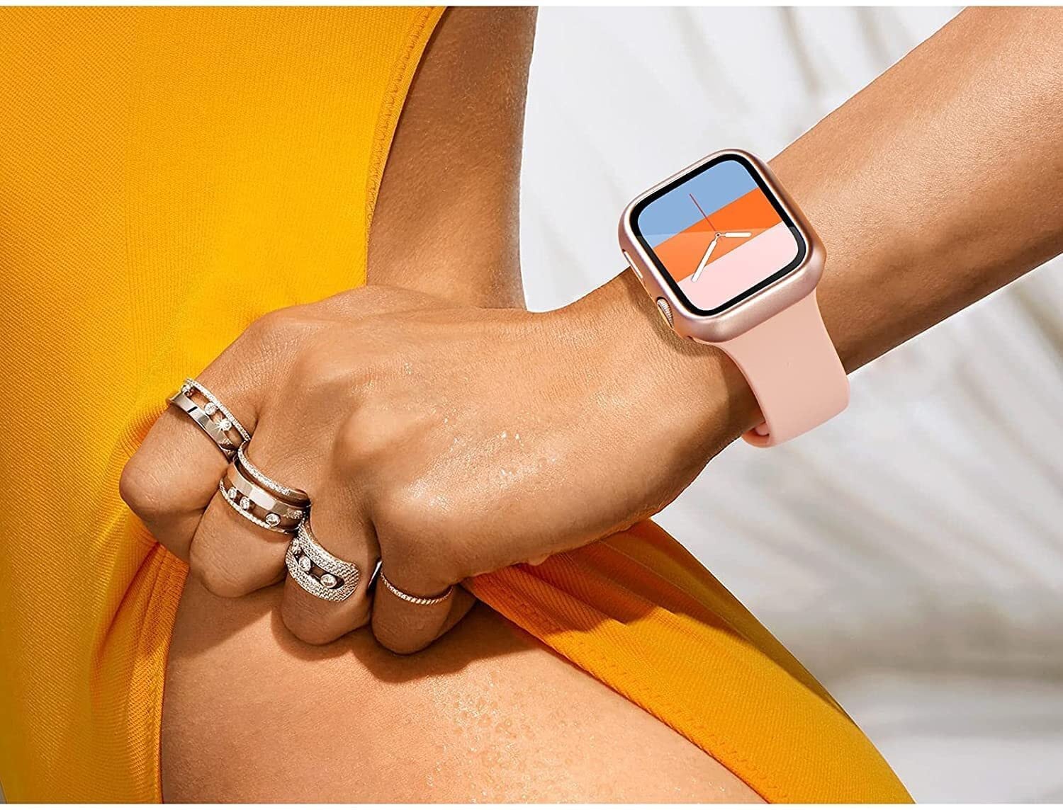 LIRUWECH Apple Watch 用 防水ケース 41mm-45mm アップルウォッチ第9/8/7世代 用 カバー 一体型 PC素材 全面保護 超薄型 装着簡単 耐衝撃 高透過率 指紋防止 傷防止 (ローズゴールド,41mm)