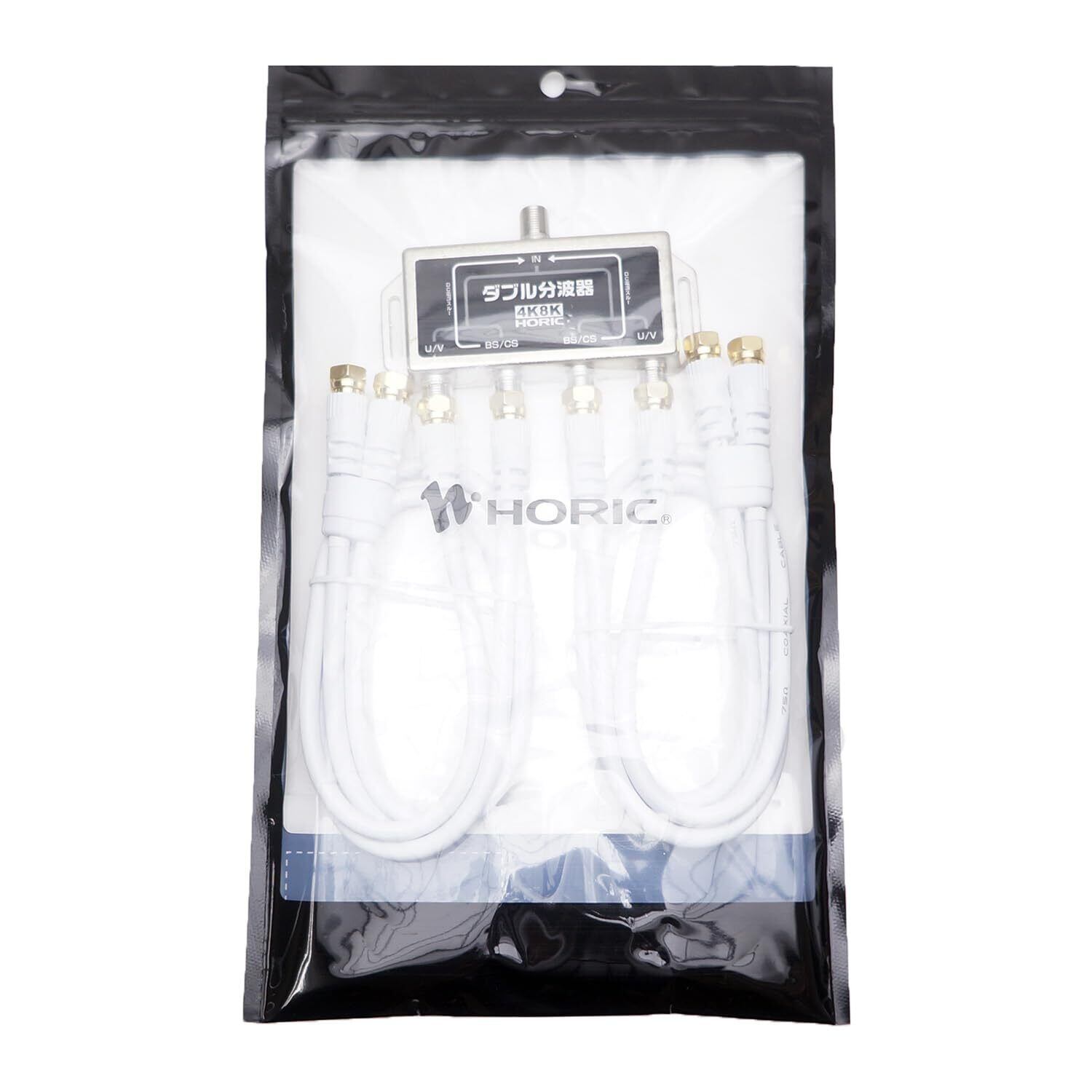 ホーリック アンテナダブル分波器 【4K8K放送(3224MHz)/BS/CS/地デジ/CATV 対応】 ケーブル4本付属 50cm HAT-WSP005
