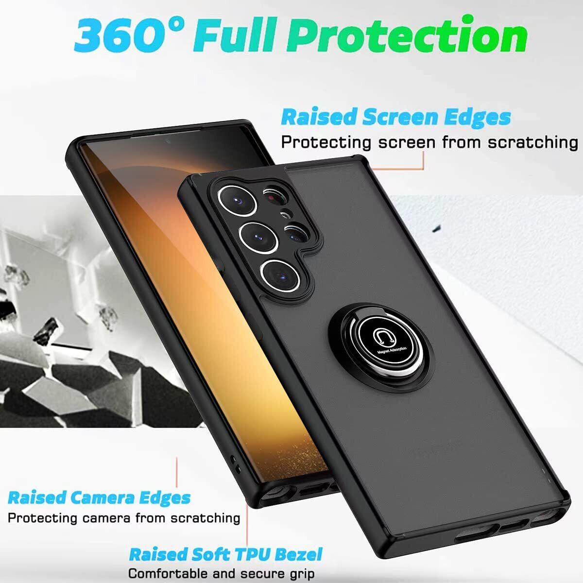 Yiunssy Galaxy S23 ultra ケース 耐衝撃 薄型 軽量 車載ホルダー対応 ギャラクシー S23 ultra ウルトラ ケース Galaxy S23 ultra リング付き 360度回転 スタンド機能 TPU+PC 指紋防止 落下防止 擦り傷防止 取り出し易い (Galaxy S23 ultra, ブラック)