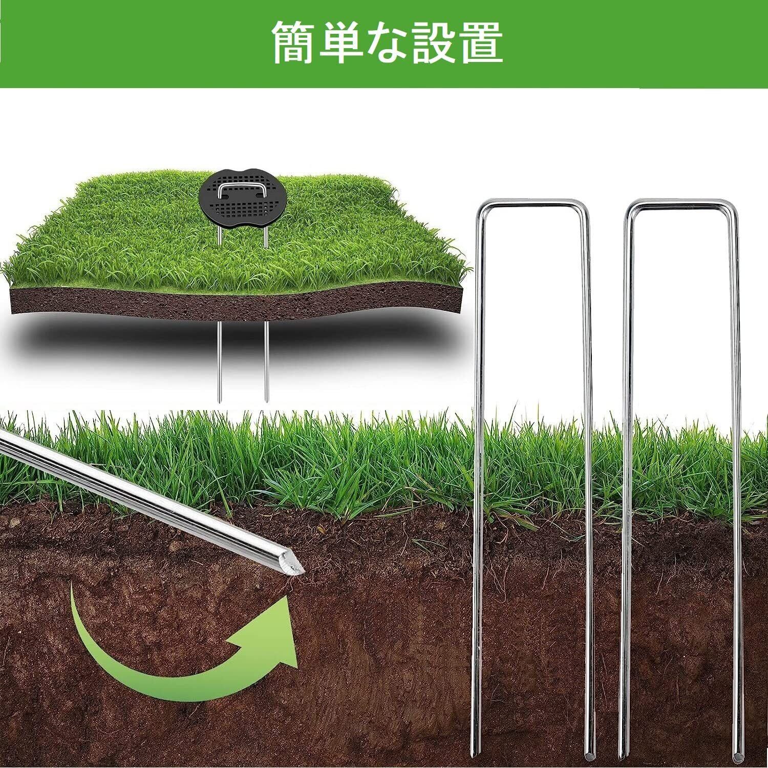 【幅広い用途】芝草、草や芝、フェンス、雑草バリア、屋外のワイヤーやコード、テント、防水シート、防草シート、人工芝、農業用防虫ネット、灌水ホース、不織布、ビニールマルチ、庭の布などを固定するのに最適です。